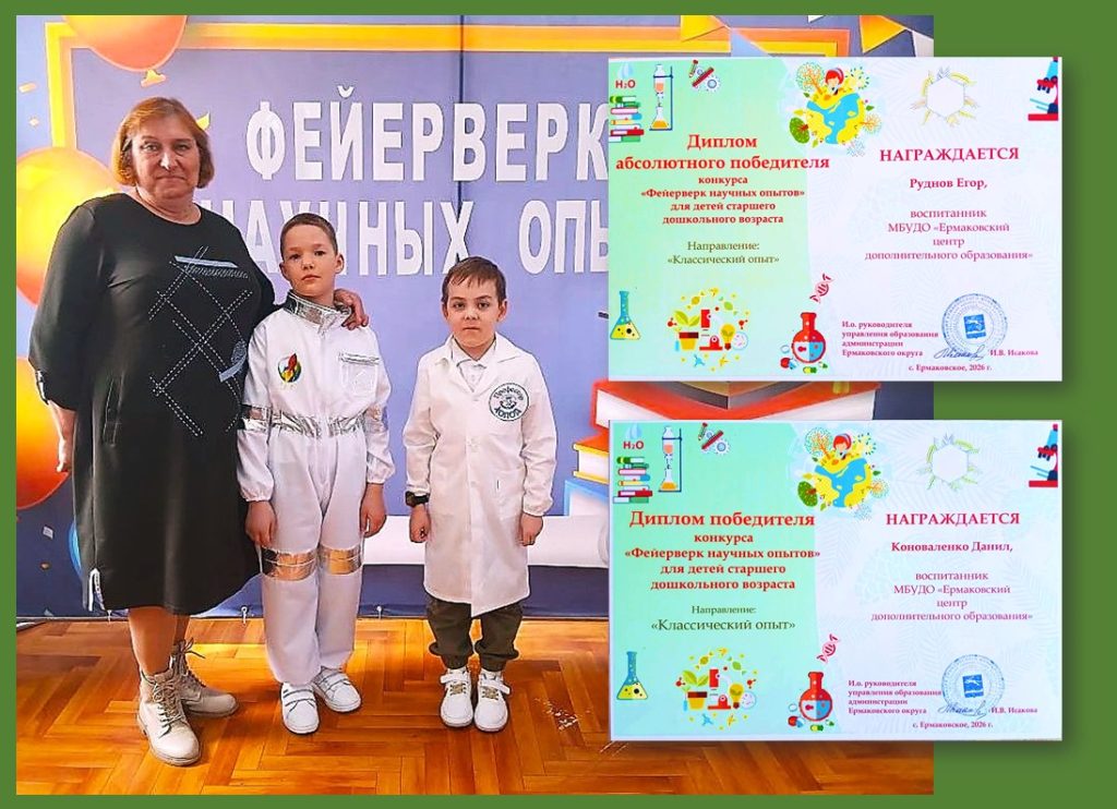 Участие в муниципальном конкурсе «Фейерверк научных опытов — 2026». Результат — двое победителей.
