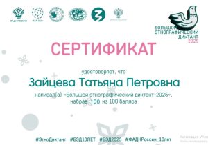 Сертификат участника Онлайн-викторины